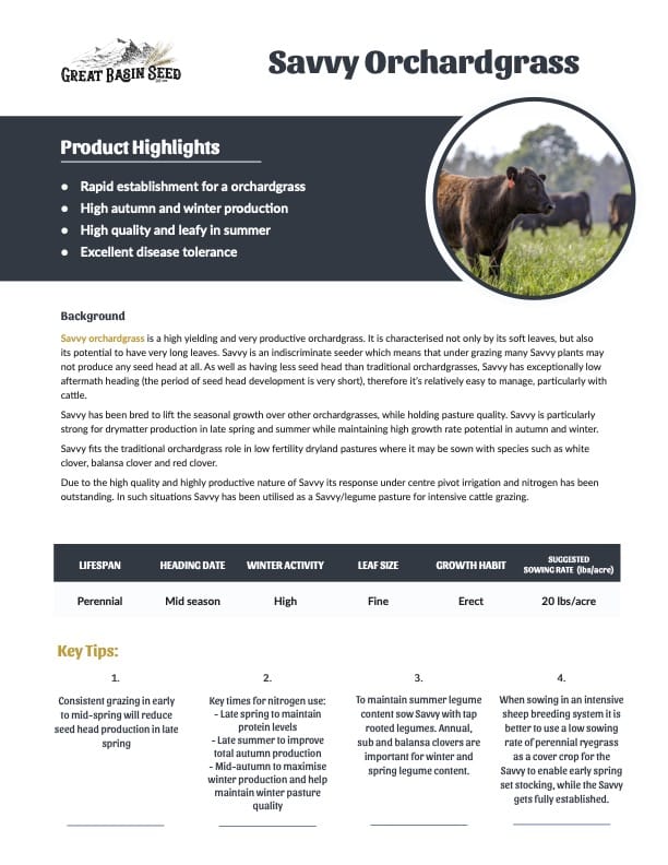 Savvy Orchardgrass Product Sheet